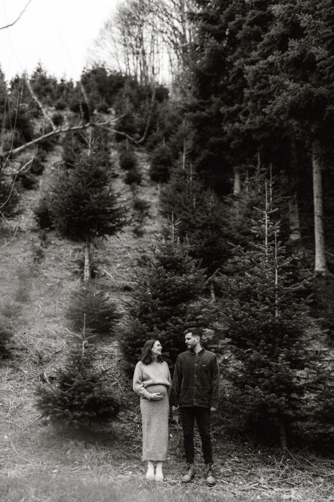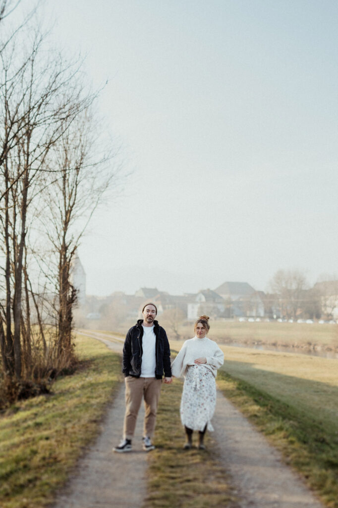 Werdende Eltern bei einem Babybauch-Fotoshooting bei natürlichem Licht in Offenburg.