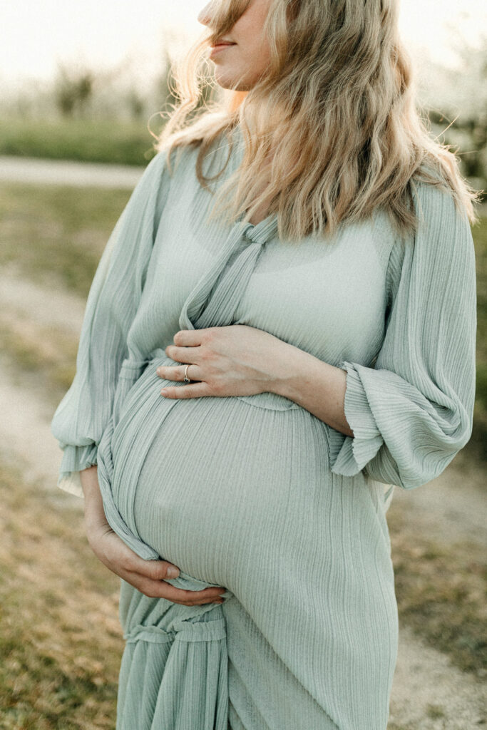 Schwangerschafts-Fotografie im Grünen bei Abendsonne in Offenburg.