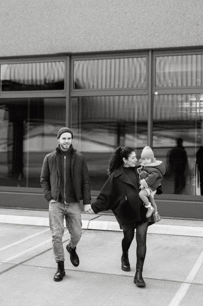 Familie bei einem Fotoshooting am Kinzigdamm in Offenburg.